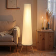 Lampadaire trépied bois naturel avec variateur blanc en tissu